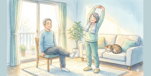 この記事で紹介するのは、自宅のリビングで、椅子や床を使ってできる非荷重運動が中心です。