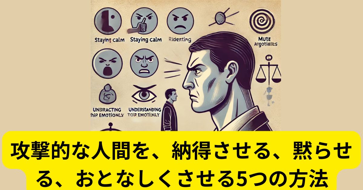 攻撃的な人を「納得させる」「黙らせる」「おとなしくさせる」方法は、相手のタイプや状況によって異なりますが、基本的な対処法を5つ紹介します。