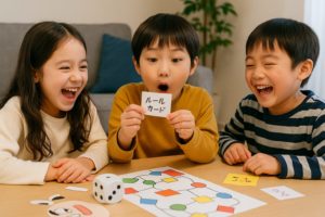 「1マス戻る」ではなく「好きな歌を歌う」「変な顔をする」といったアクション要素を入れることで、ただ進むだけでなく、笑いや会話も生まれます。