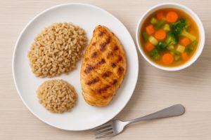 玄米、全粒パン、オートミールなどの低GI炭水化物に、肉・魚・卵・大豆製品のたんぱく質を合わせると、空腹がぶり返しにくくなります。