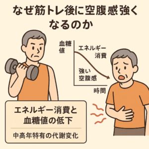 筋トレでは多くのエネルギーを使うため、運動後は血糖値が下がりやすく、体が「補給して!」と合図を出します。