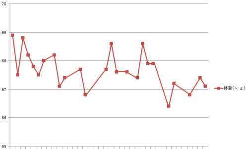 スタート時は68.9kg → 1ヶ月後 66.8~67.2kgと約1~2kgの体重の減少がありました。