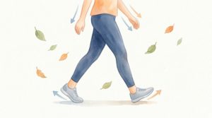 肘を軽く曲げ、後ろに鋭く引く動作を意識すると、自然に肩甲骨が中央に寄ります。肩甲骨の周りには脂肪燃焼を助ける「褐色脂肪細胞」が集中しており、ここを刺激することで痩せやすい体質へと導かれます。腕振りは「前への飾り」ではなく「後ろへのエンジン」。胸が開き呼吸も深くなるため、疲れにくくなるメリットもあります。
